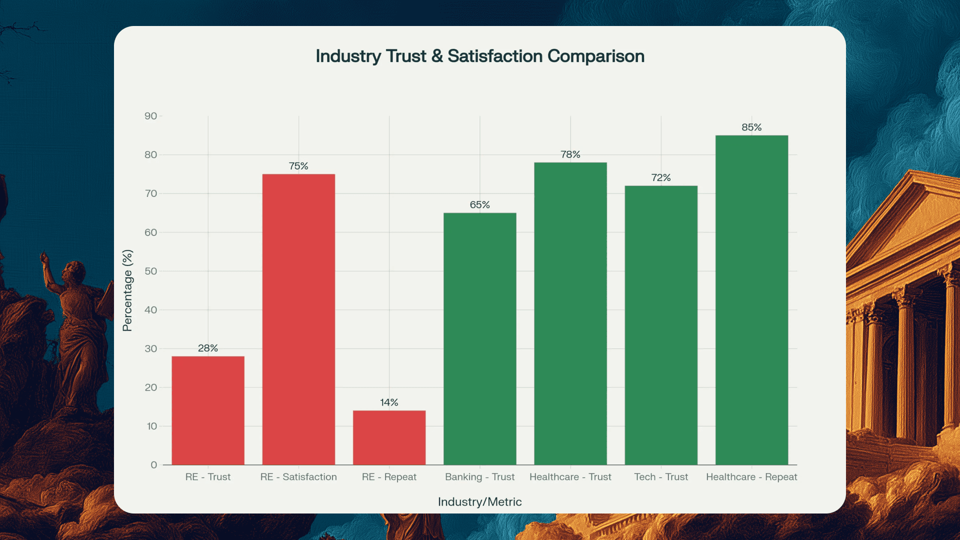 The scale of the inefficiency suggests the issue is structural, not personal. Agents work hard, but without tools that compress timelines and filter noise, the process remains slow. Buyers who endure nine months of scattershot searching are less satisfied, less trusting, and less likely to return for another transaction. The numbers confirm it: customer satisfaction in real estate lags other service industries by wide margins.