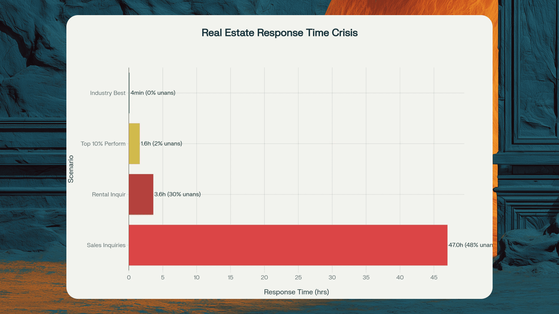 Real estate is built on timing, yet the industry has allowed delay to become normal. Buyers send inquiries expecting quick acknowledgment, but the average response time stretches to 47 hours and nearly half of inquiries go unanswered. Data shows that contacting a lead within five minutes makes conversion 21 times more likely, while most deals go to the first agent who replies. This gap between customer expectation and industry performance is not small inefficiency rather a systemic failure that costs billions in missed commissions.